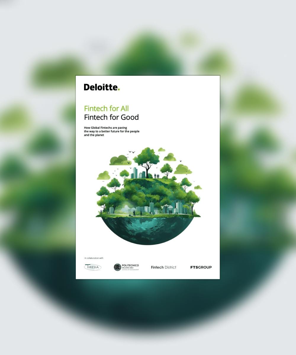 “Fintech for All, Fintech for Good” research – realized in collaboration with Deloitte, Politecnico di Milano and Fintech Stage - highlights the intersection of fintech and sustainability, analyzing a database of 485 "Fintech for Good" (F4G) companies to understand how they create value by incorporating social and environmental impact into their business model.